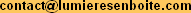 Veuillez accepter mes excuses pour ne pas avoir mis mon adresse en lien direct mais c'est tout ce que j'ai trouvé pour la protéger des robots des spammeurs qui parcourent Internet à la recherche d'adresses à inonder de courriels publicitaires.